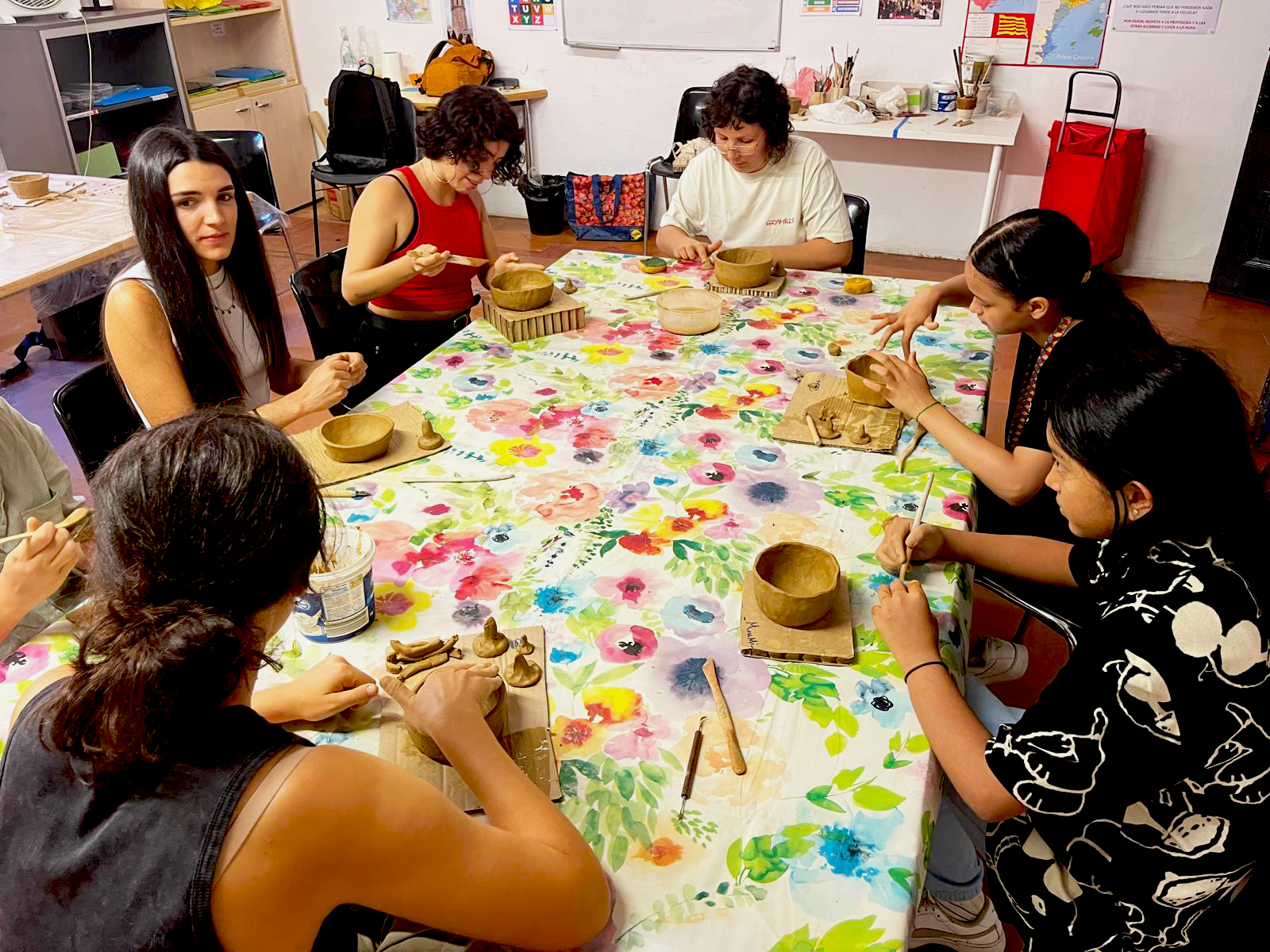 Joves fent una activitat a Kn60Lab, ubicat al barri del Raval de Barcelona.